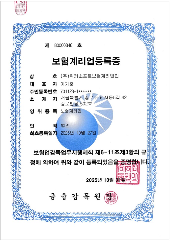 (주)위키소프트보험계리법인 사업자등록번호 : 105-86-60777 서울시 종로구 인사동5길 42 종로빌딩 502호